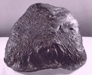 The presence of elemental nickel in iron-nickel meteorites distinguishes them from rocks or minerals produced in the Earth. The amount of nickel in these meteorites ranges from 5% to almost 20%. When they are sliced and etched with acid, a pattern of intergrown crystals is revealed. This is called a widmanstatten pattern. This texture of the iron-nickel meteorites suggests they cooled and crystallized very, very slowly deep inside asteroids.