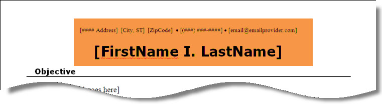 - Your first and last name are expected to appear at the top of your resume. Enter your Name in place of [FirstName I. LastName], and keep the following in mind: